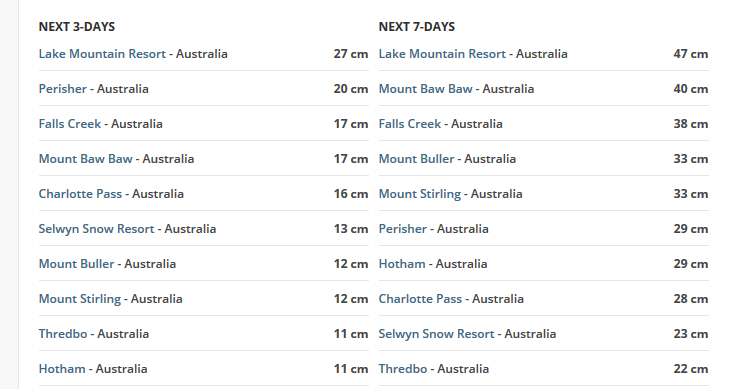 Mt Buller is reporting ’15cm fresh on top of 10cm yesterday and still falling’ (It’s going to be ‘EPIC’ says the over hyped snow guy on their daily video update).