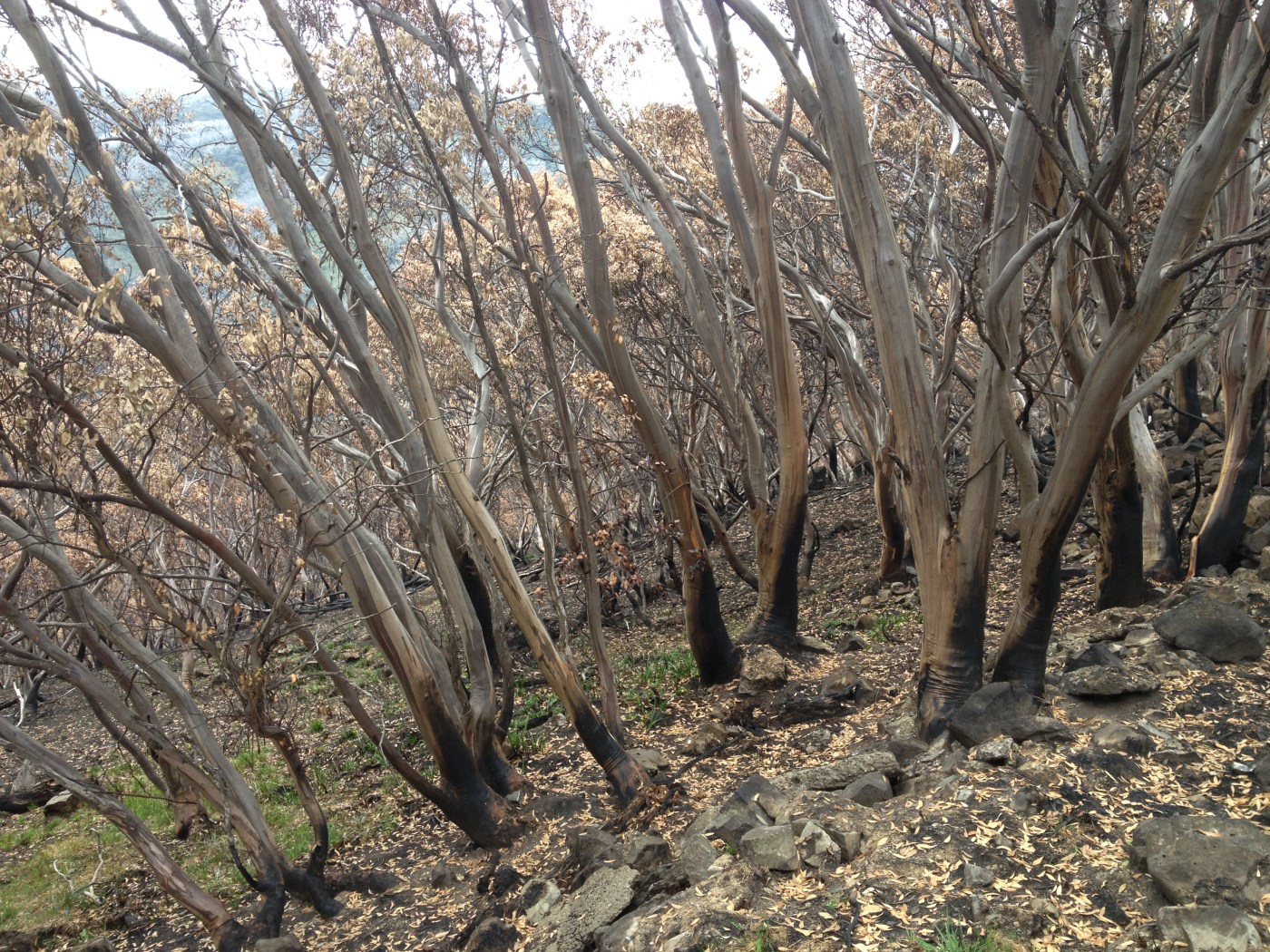 The iconic mountain species of the mainland, the Snow Gum (Eucalyptus pauciflora), has been hammered in recent decades by multiple fires, often with small gaps between fires.