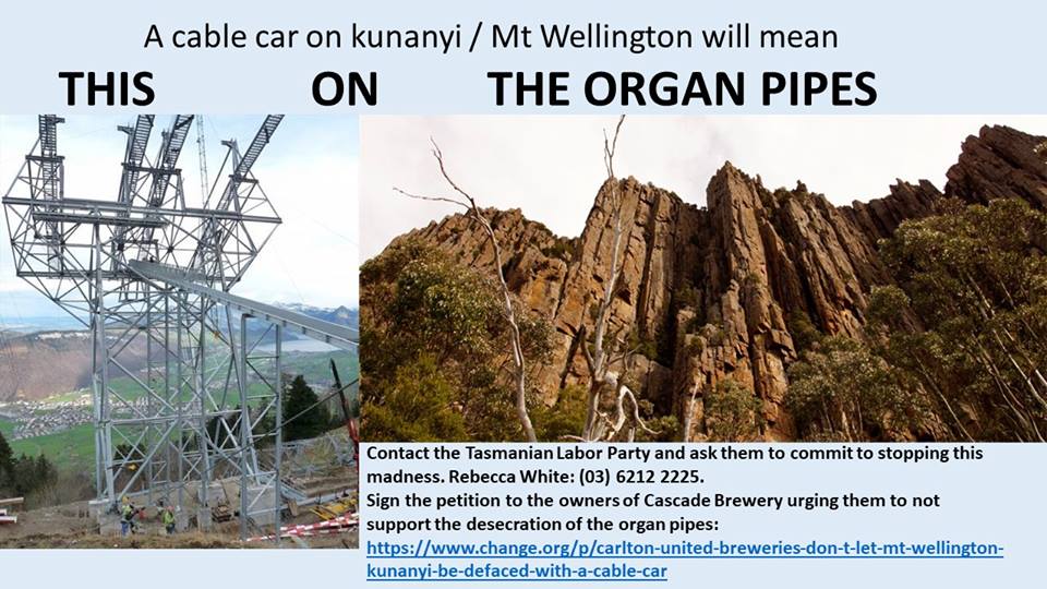 Residents group opposed to the cable car (Respect the Mountain. No Cablecar) have put out a call for people to contact the ALP, to encourage the party to clarify their position on the cable car. They are also calling on people to lobby the brewery CUB, which has land at the base of the mountain, and who has been approached by the developer to be involved in the project.