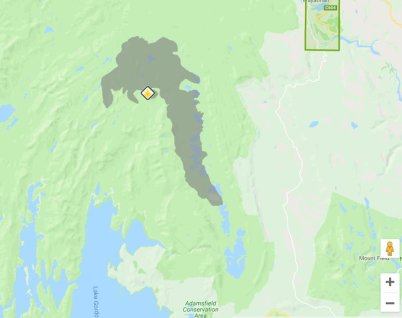 The fire is approximately 20km northwest of Maydena township. The southern fire edge is approximately 7km north of Adamsfield.