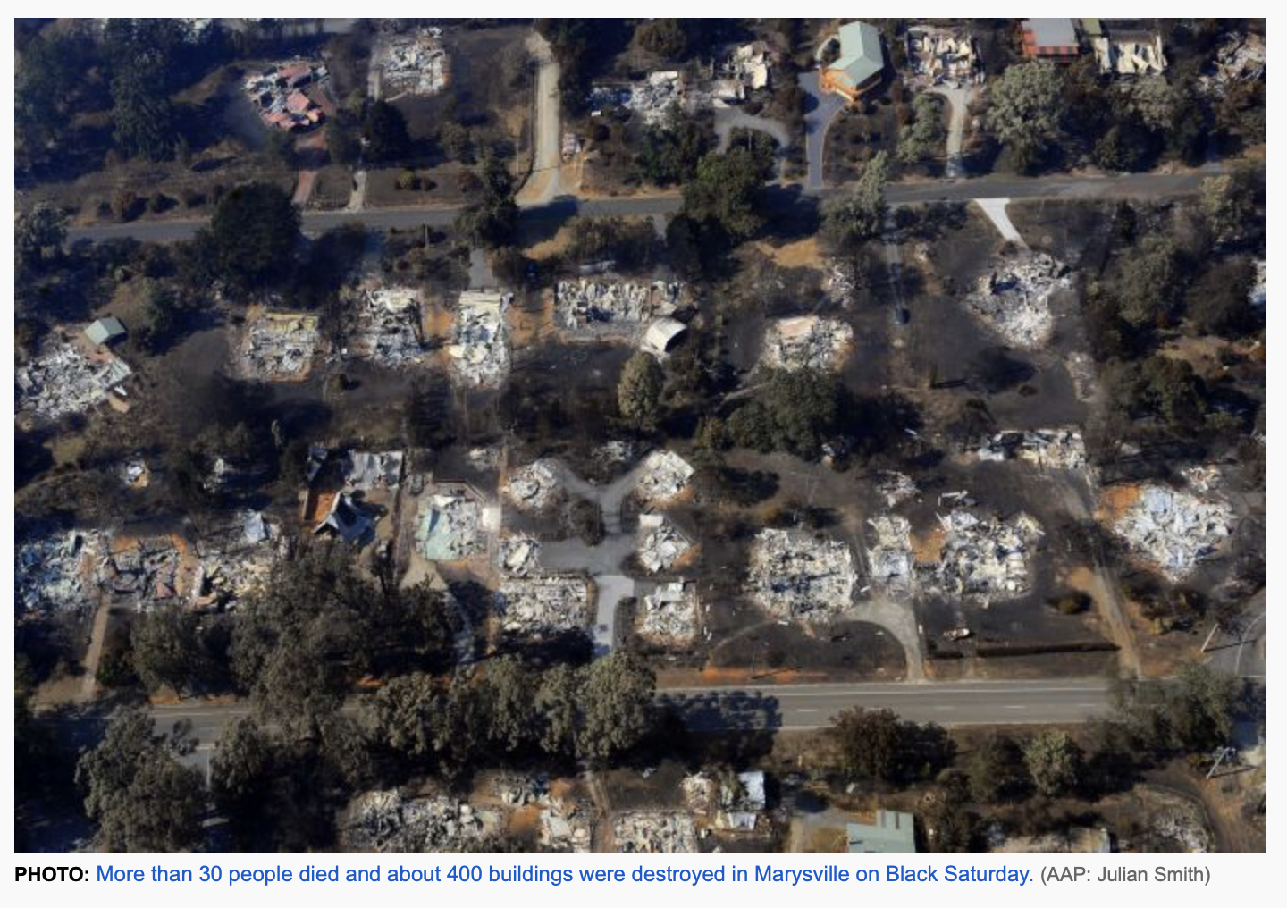 This change in relationship is already playing out: the rebuilt Marysville in Victoria is a very different place to the town that was largely burnt to the ground in the Black Saturday fires of 2009, with the edge of the surrounding forest pushed back away from the town.