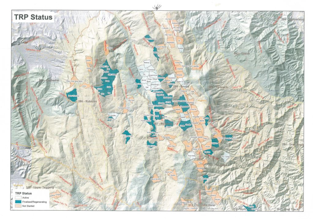 ‘The Tullip Coupe (288-513-0004) on the flank of Torbreck Mountain and at the headwaters of Snobs Creek Valley is going to be logged this month or next.
