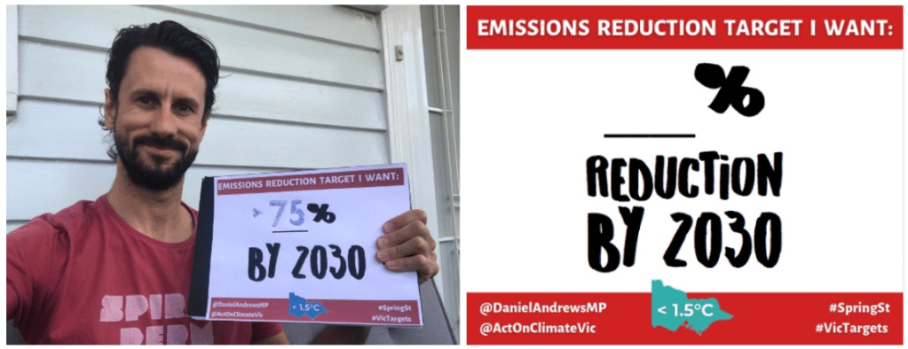 Post a selfie to let Premier Dan Andrews know what climate targets you want him to deliver for Victoria.