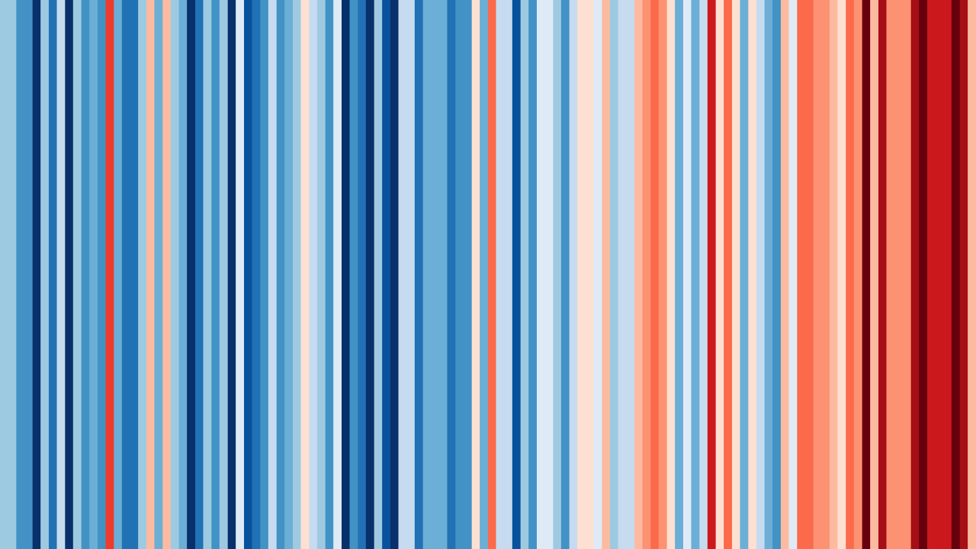These ‘warming stripe’ graphics are visual representations of the change in temperature as measured in each country over the past 100+ years. Each stripe represents the temperature in that country averaged over a year. For most countries, the stripes start in the year 1901 and finish in 2020.
