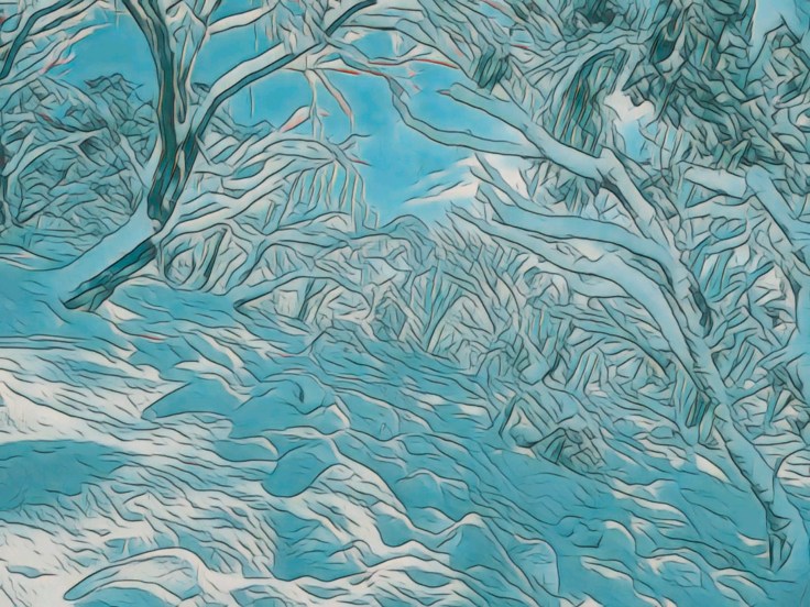 I hope you enjoy these interpretations (modified photos) of trees under snow from recent storms that blanketed the area around JB Plain in the Alpine national park in Victoria.