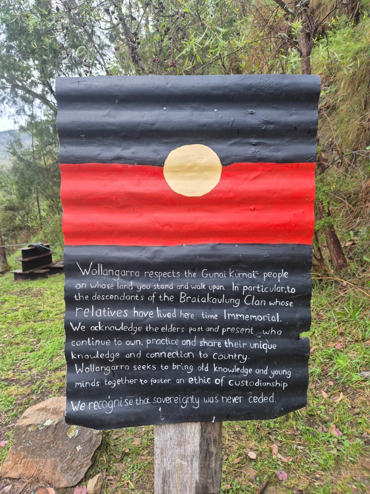 One of the great things about Wollangarra is its location. You walk in down a long open valley, cross the river on a flying fox, and then a short walk leads you to a wonderful homestead surrounded on one side by the river, paddocks with sheep, and high forested hills.