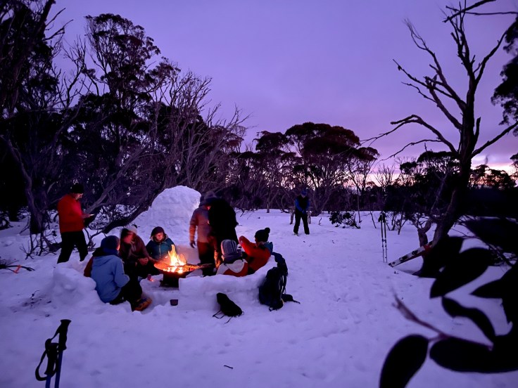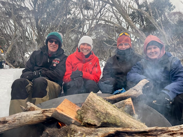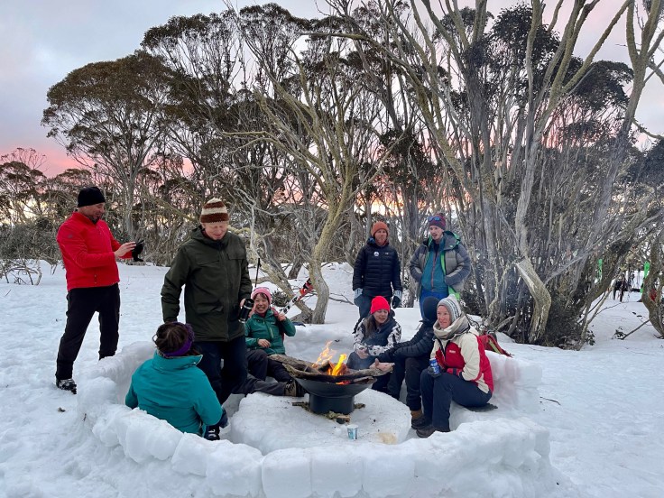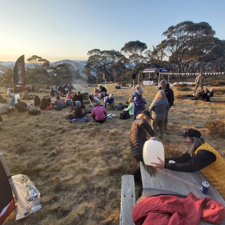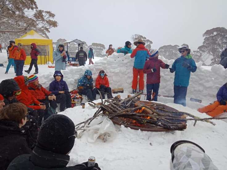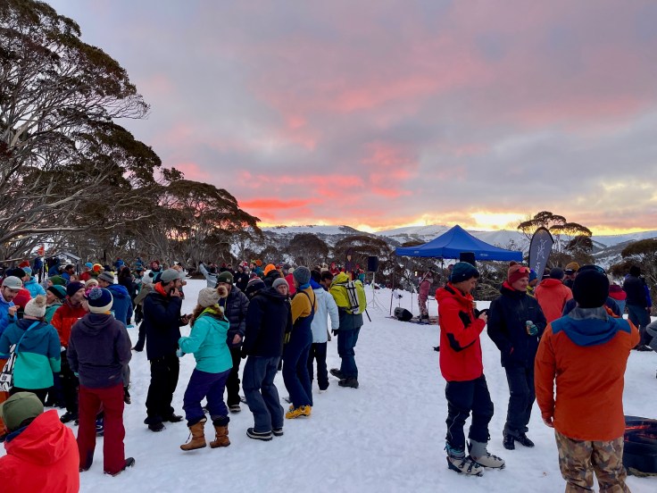 ‘The outdoor bar setting, snow scene & vibe 3 Sept 2022 was sensational. Casual, fun, welcoming and inclusive. I chatted to young and old alike around the fire and in lineups for drinks and crepes, xc skaters, snowshoers, telemarkers, tourers, snowboarders, resort skiers…everyone there to celebrate all things snow and a love of being in the alpine environment. Everyone had gotten up to something different during the day that piqued their interest then came together that evening to share experiences, learnings, laugh, engage and plan future adventures. It was a standout evening & cheers to all, who behind scenes, made it happen, the planning, extensive setup & build and the packup.’
