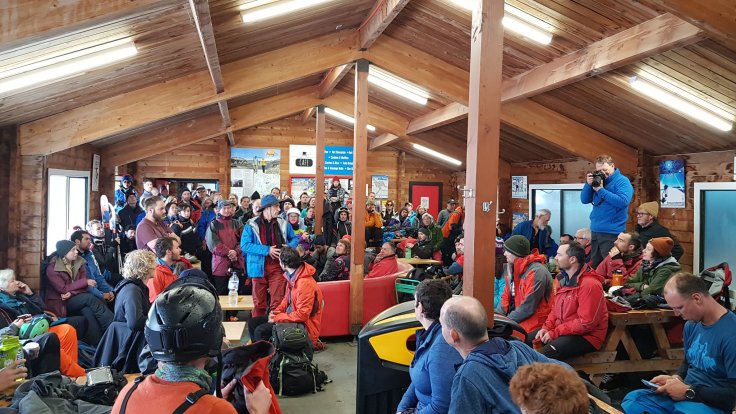 A deep bow to head of ski patrol Bill Barker who provided impeccable advice on conditions and inspiring presentations at The Genny. Simon Murray dug snow pits and did most of our graphic design. Chris Hocking and Drew Jolowicz provided amazing sidecountry images. David Flanders was our rego desk guy and podcast interviewer extraordinaire.