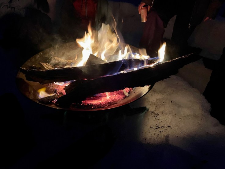 IMAGES BELOW: Outdoor bar, fire pit seating circle, igloo & evening scenes at bar & night lights of Hotham 3/9/22