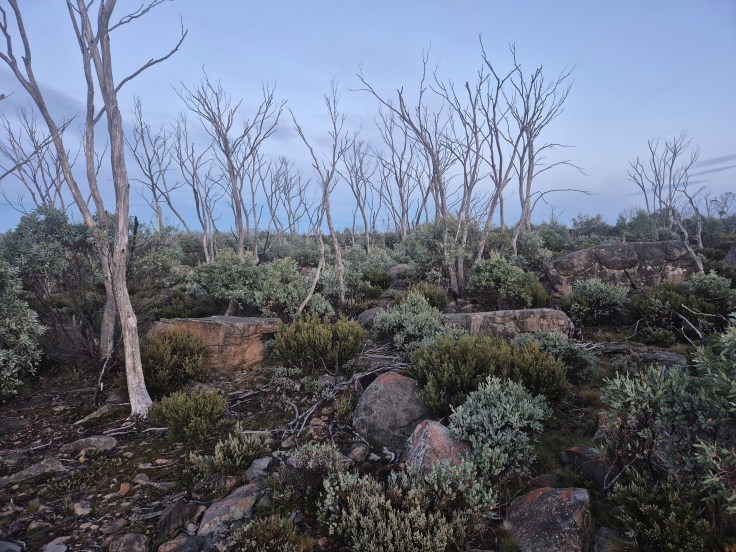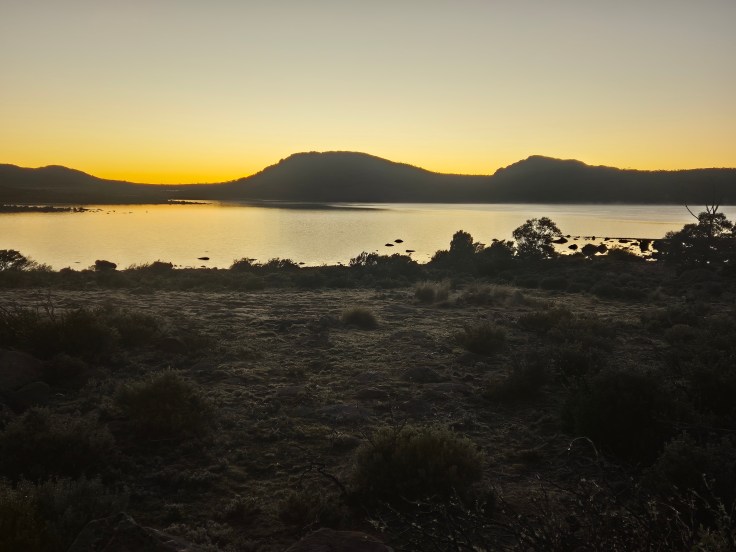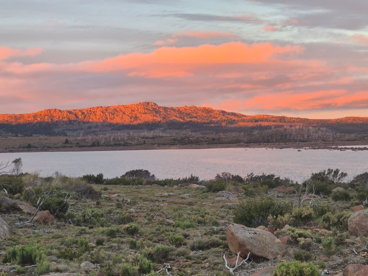 Last visit there I spent two nights camped on that exposed spot on the west end of the dam wall. Backdrop of grey dead snow gums, and moon rise across the water to the east. This place has endured. It outlasted the era of industrialisation, when it only mattered because of what it could offer to the economies of human life in the lands below. Now, thankfully we can see the other values and opportunities: solitude, biodiversity and intrinsic value, dark skies, silence, recreation. Now the land waits, and recovers, slowly breaking down the concrete pads of long ago housing. It has survived and thrived, in spite of our attempts to bend it to meet our desire to commodify nature and everything that remains wild.