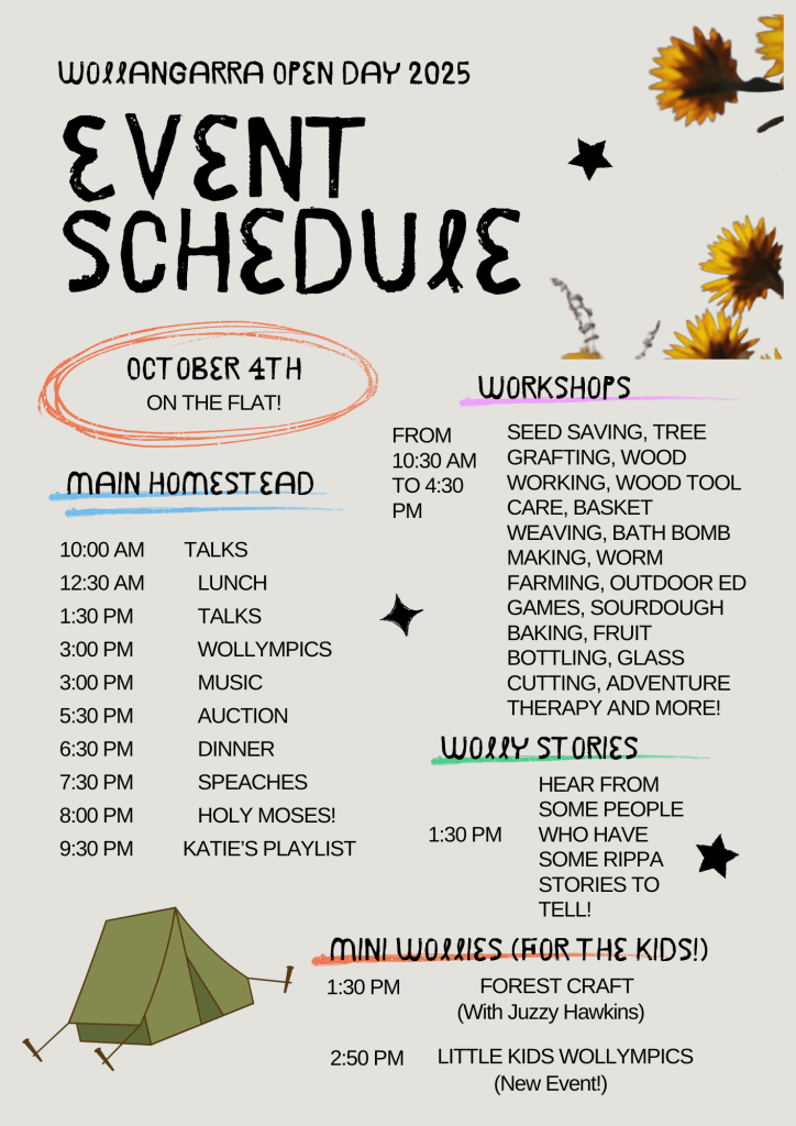 Wollangarra offers a hands-on approach to learning about life, leadership, and environmental care. On its website they say ‘here, young people find a welcoming community that values hard work, simple living, and connection to the land’. This is reflected in the events that happen on the open day (a report from the 2024 event can be found here).