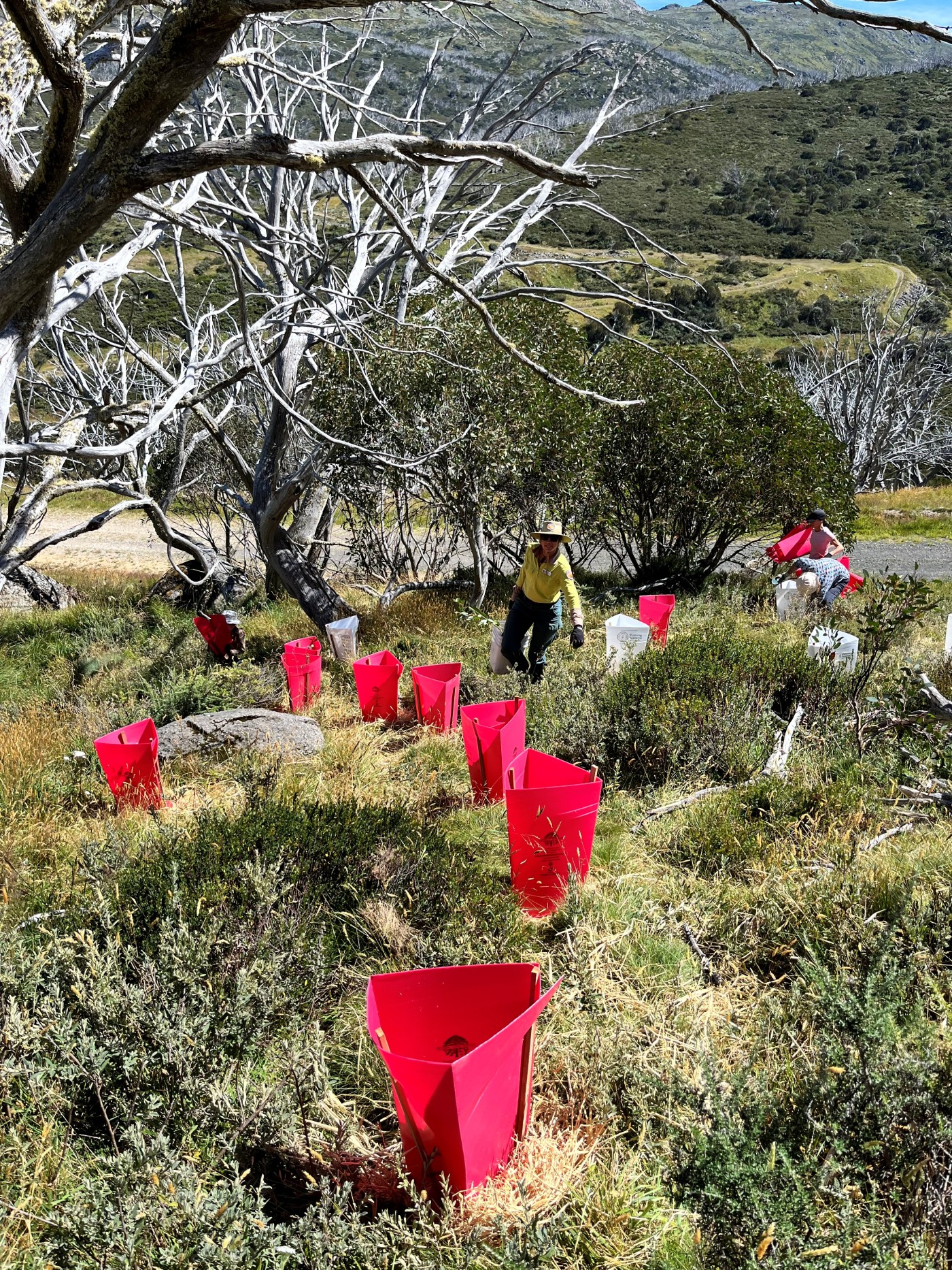 National Parks and Wildlife Service (NPWS) led Volunteer planting days are uniting the mountain community to tackle snowgum dieback. Over the past three years, NPWS volunteers have planted more than 3,000 snowgums across the Perisher Range, helping restore areas most affected by decline.