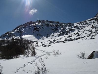 The serious part of the trip is between Castle Crag and the north east corner of the Ducane Range. In summer, an experienced and fit walking party will not have any troubles. In winter it is a more serious proposition, especially if there is heavy snow lower down – this makes the approach from Ducane Gap to the treeline at Castle Crag much tougher, making the climb onto the range exhausting.