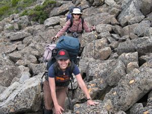 crossing around Mt Gould, rocky face of the Minotaur behind