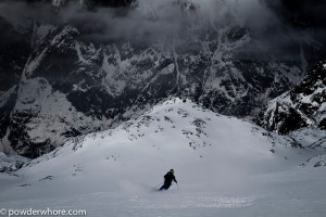 Powderwhore traditionally produce films with a focus on telemark skiing. This year: ” Powderwhore is no longer focusing primarily on the telemark turn. BREAKING TRAIL will highlight riders of all disciplines choosing their own backcountry adventures”.