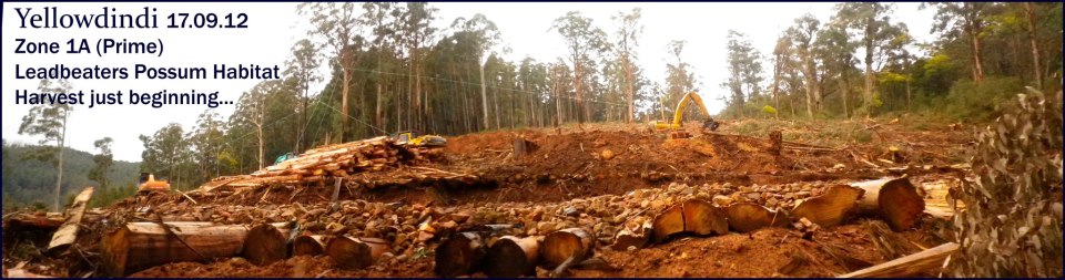 “It is absolutely critical that what is left of the mature native bush in the Central Highlands be protected. Many nature reserves were destroyed in the Black Saturday bush fires and it makes sense that they be supplemented with neighbouring habitat which remains intact. The future of Victorian native plants and mammals depends on it” said one of the activists at Yellowdindi today.