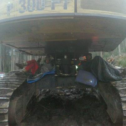 On thursday January 19, the group re-entered the coupe and set up another tree sit, connected to 5 pieces of machinery. Details here.