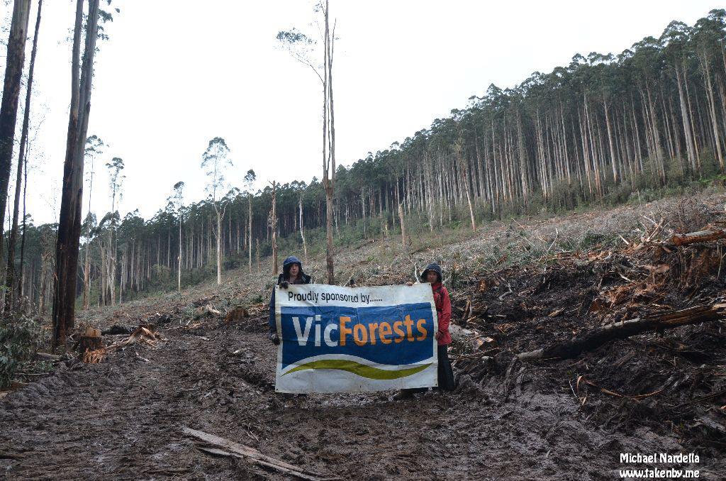 Australian environmental groups state that there is less than 7% of native forest remaining in Victoria today compared with the year 1812. The group of activists in the coupe this morning believe that what’s left must be protected.