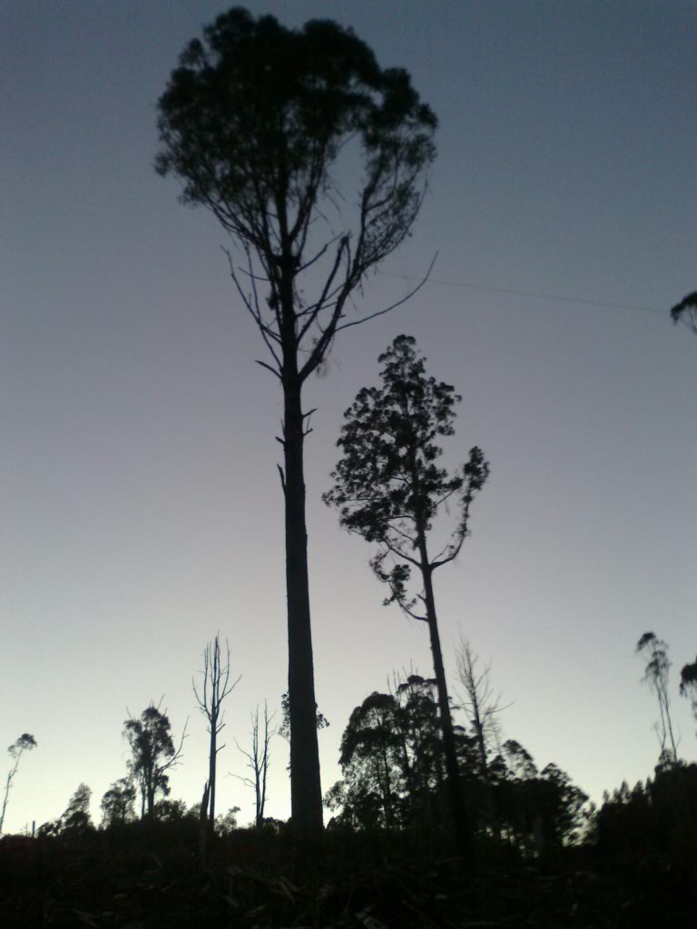 Much of the Toolangi forests were burnt in the fires of 2009. One Toolangi local said that “residents are concerned that following the Black Saturday fires in 2009 that clear-fell logging in the area will increase the risk of mega-fires due to the large amount of wood waste which is left behind in coupes. The resulting mono-species regeneration after logging operations is far more combustible than the mature age forests which are being removed. This is a recipe for further fire disasters”. They point to research by eminent forest ecologist Dr David Lindenmayer, which clearly indicates that clear-felling practices in the Central highlands notably increases fire risk and thus threatens the whole region.
