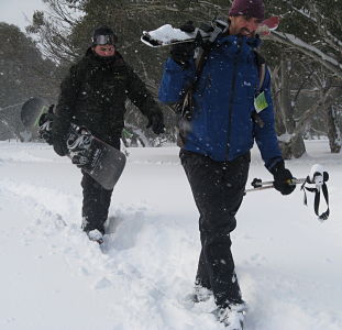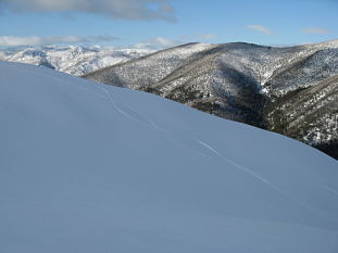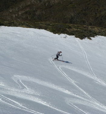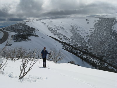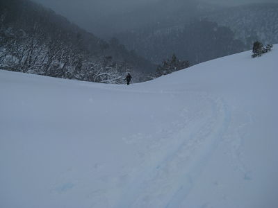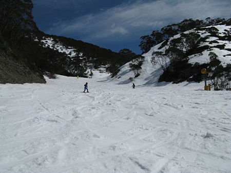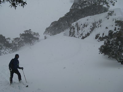 on Mount BlowhardGeez, I'm sick of these crowds. Slalom Gully, late SeptemberEarly Oct. South face of Hotham still holding some good linesNot quite ready to call it quitting timeMt Blowhard gullies