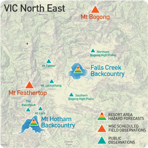 Mountain Sports Collective (MSC) reports that ‘the rate of accumulation, particularly on aspects lee to the north west is a problem. A considerable wind slab avalanche hazard exists as observed at both Falls Creek and Mt Hotham resorts and believed to be widespread particularly in the alpine (above 1650m)’.