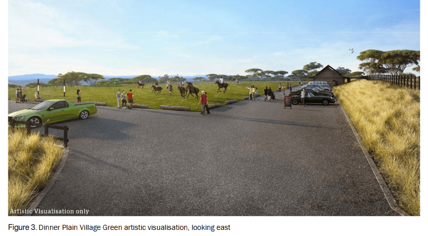 At a recent meeting the Alpine Shire has confirmed that the ‘Village Green’ planned for Dinner Plain near Mt Hotham will not proceed in its current form. However it will continue to look into options for a ‘lower impact’ public space in the village.