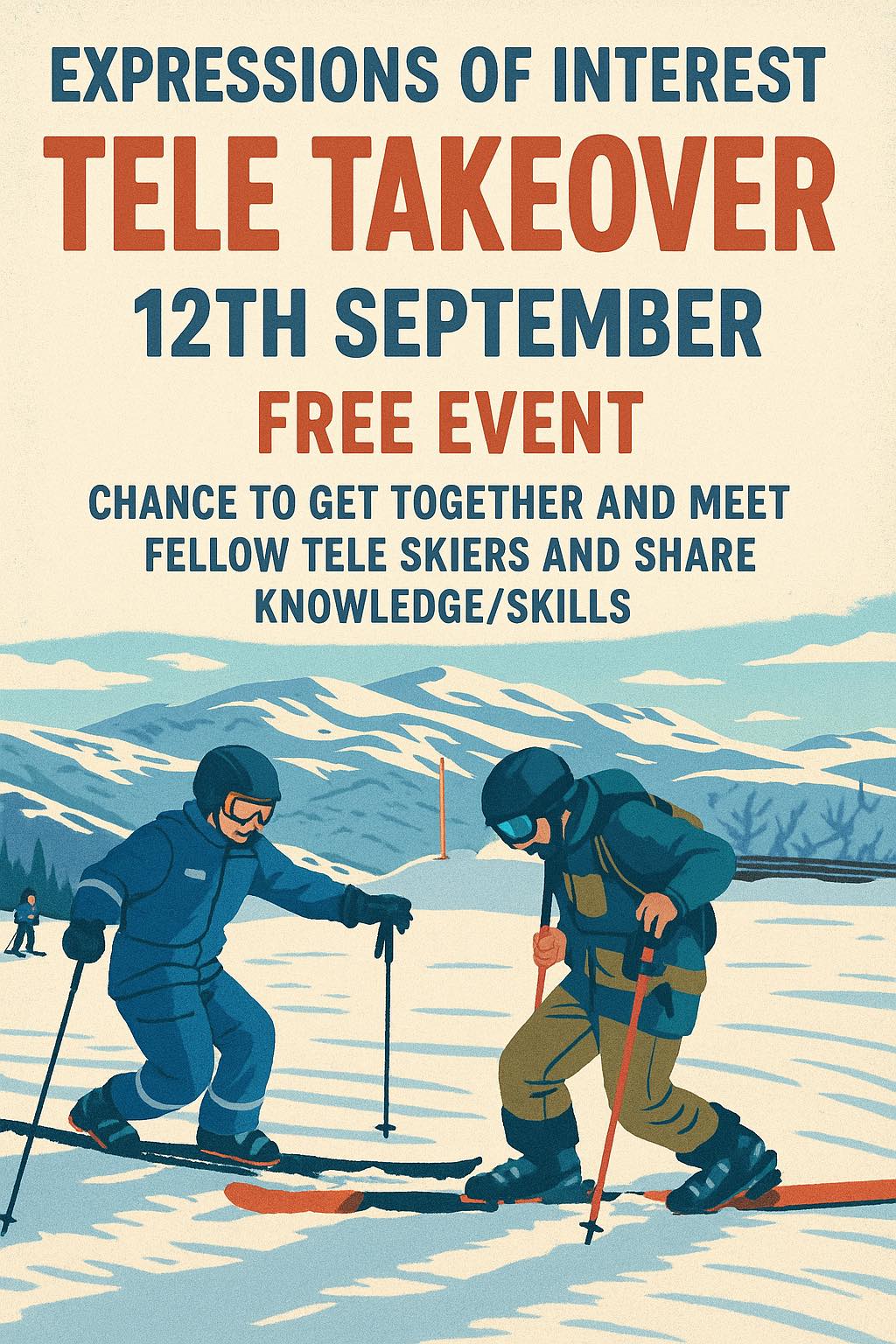Sophie Stud posts in the Australian Telemarks facebook group that there will be another Tele Take Over this winter. She says: ‘A few of you may have made it to last years Tele take over, this year I would love to make it bigger then ever’.